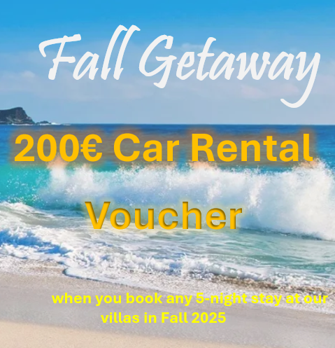 Fantastic beaches in 15 minutes by car , there is no traffic in the island , driving along the coast is relaxing . Nice opportunity for people that like hiking, many paths to be done early morning with incredible view .